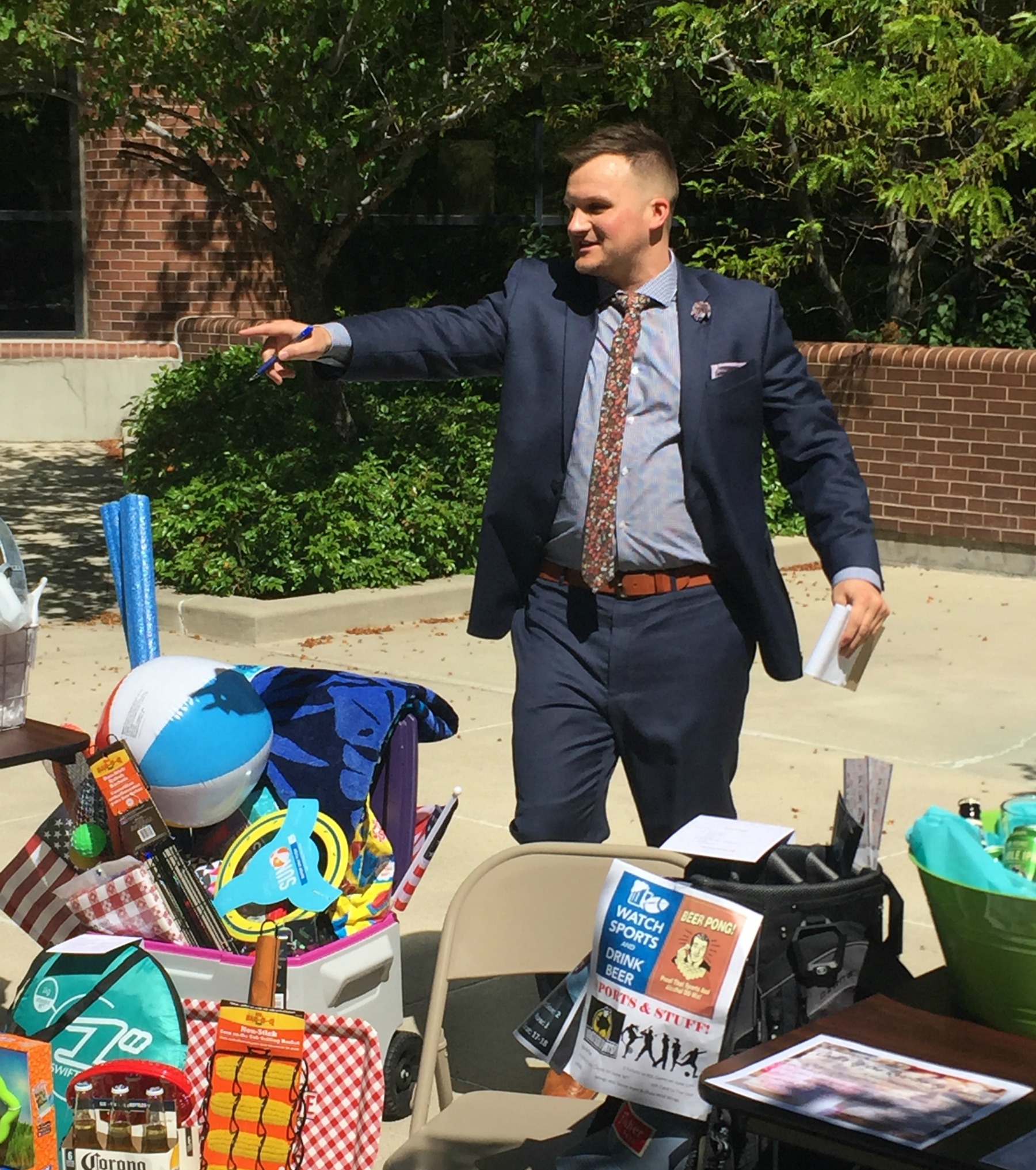 Each year, the division ends its four-month long fundraising efforts with its biggest event — an auction. The office is divided into teams and each team puts together a basket to be auctioned. The team that raises the most money with their basket wins a fun offsite team activity. This year’s baskets didn’t disappoint with items such as summer fun passes to local amusement parks, the zoo, and the aquarium, gift certificates to a mystery room and local restaurants, and lottery tickets.